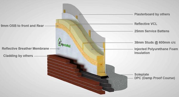 Our panel is comprised of a factory injected insulation between 2 OSB boards with modular structural studs. Prefabricated in our purpose built factory, this negates the need for any site insulating, providing a complete thermal envelope.